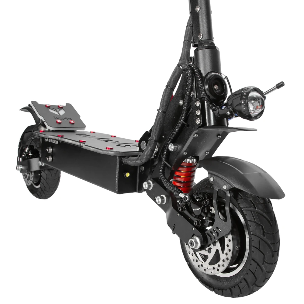 Электросамокат Syccyba M10 60V 28.8Ah – современная техника по разумной стоимости предлагает купить наш интернет-магазин. Техника предназначена для практичных пользователей. Имеет грузоподъемность до 150 кг. Может использоваться райдерами-подростками и взрослыми ездоками с большим весом. При максимальной мощности электродвижка в 2400 Вт максимальные скоростные параметры составляют 70 км/час. Запаса хода достаточно для продолжительной езды Модель оснащена 2 зарядными на 3А, которые находятся в комплектации. Широкая брендовая платформа с фирменной надписью гарантирует одновременное размещение стоп, не скользит, не допускает отечности конечностей. Регулируемое седло – мягкое, повторяет анатомические части тела, снимает усталость и нагрузку с позвоночника. Рулевая часть по максимуму наполнена функционалом. Оснащена анатомическими грипсами, увеличивающими степень хвата. Гидравлическая тормозная система обеспечивает своевременность остановки. Контроллеры на 28 А – синусные, обеспечивают защиту от межфазного замыкания. 10-дюймовая колесная часть – накатистая, обещает отличный разгон. Оснащенность информационным компьютером позволяет полностью контролировать ситуацию, исключать форс-мажоры. Для заказа товара сейчас предлагаем сделать телефонный звонок менеджеру нашего интернет-магазина.