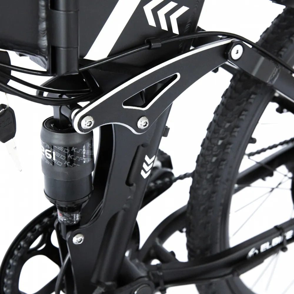 Модель оснащена дисковой тормозной системой и амортизаторами фирмы Kezhen KZ-800A, которая вместе с амортизационной вилкой и регулируемым анатомическим седлом обещает комфортную плавную езду по проблематичной местности.