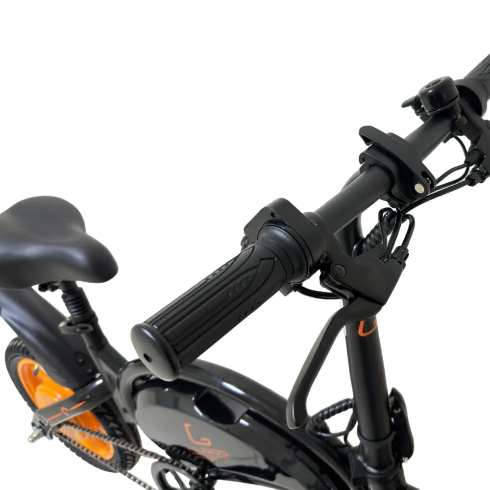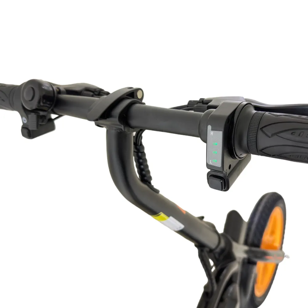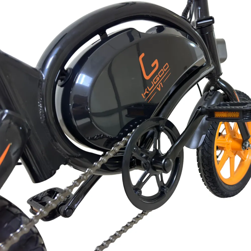 Kugoo Kirin V1 оборудован современными электродвигателем и комплектующими. Мощный 400-ваттный электромотор разгоняет велогибрид до 40 км/ч. Аккумулятор находится в защитном коробе на раме, позади которого расположен порт зарядки под заглушкой. Время полной зарядки батареи – 4 часа, а одного заряда хватает на 35 километров пути. Электродвигатель может работать в режиме поддержки – облегчать кручение педалей – при этом зарядки батареи хватит на более длинное расстояние. Управляется самокат с руля – на нём находятся ручка газа и ручка тормоза. Помимо них на руле расположены громкий звонок и кнопка включения фары, так же находящейся на руле. Эффективные дисковые тормоза просты в обслуживании и способны остановить велосипед в считанные секунды.