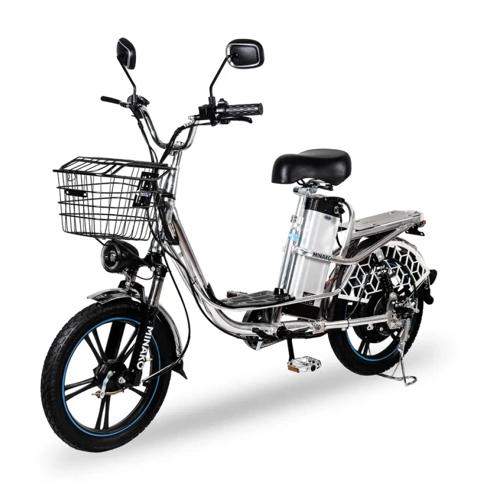 Велосипед прост в управлении и ремонте. Для удобства вождения имеется мягкое сиденье и платформа для ног. Так как изначально это модель была продумана для сферы услуг доставки, то можно установить дополнительную корзину-багажник сзади. Подойдут для перевозки каких-либо вещей или сумок. Безопасность и комфорт на дорогах обеспечат 2 зеркала заднего вида, а также надежные барабанные тормоза. Мощное мотор-колесо позволяет разогнаться до 50 км/ч. Емкий аккумулятор 60В/12Ач рассчитан на пробег до 45 км на одном заряде.