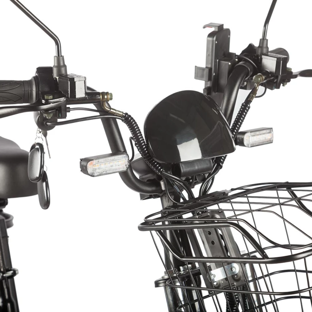 Электровелосипед Eltreco Gelbert Khan Monster 2 – это современное средство передвижения, сочетающее в себе продуманную конструкцию, передовые технологии и стильный дизайн для уверенных городских и пригородных поездок.Модель оснащена передним и задним амортизаторами, которые эффективно смягчают неровности дороги, обеспечивая плавность хода и комфорт даже на пересеченной местности. При заявленном максимальном пробеге до 100 км на одном заряде этот велосипед подходит для длительных поездок – конечно, реальные показатели зависят от веса райдера, рельефа местности, погодных условий и температуры окружающей среды.Безопасность обеспечивается за счет дисковых гидравлических тормозов, которые гарантируют надежное и своевременное торможение в любых ситуациях. Легкий вес в 57 кг позволяет легко маневрировать, а максимальная нагрузка до 150 кг делает модель универсальной для разных категорий пользователей.Двигатель мощностью 240 W, размещенный в задней части, обеспечивает эффективное ускорение и оптимальное распределение энергии, что способствует стабильной работе в условиях городской среды. Электровелосипед оборудован аккумулятором с емкостью 30 Ah и рабочим напряжением 60 V, что гарантирует долгий срок службы батареи и надежную работу даже на длинных маршрутах.Габариты в собранном состоянии – 1700×1150×800 мм – обеспечивают удобное расположение для водителя, а использование качественной стали в конструкции гарантирует долговечность и надежность всей системы. Дополнительное оснащение включает зеркала заднего вида, которые повышают безопасность, а встроенные передние и задние габаритные фары обеспечивают отличную видимость в условиях недостаточной освещенности.Стоит отметить, что данная модель не является складной, что подчеркивает ее прочную и стабильную конструкцию, рассчитанную на долгосрочную эксплуатацию. Электровелосипед Eltreco Gelbert Khan Monster 2 – это оптимальное решение для тех, кто ищет сочетание высоких технологий, надежности и комфорта в одном устройстве.