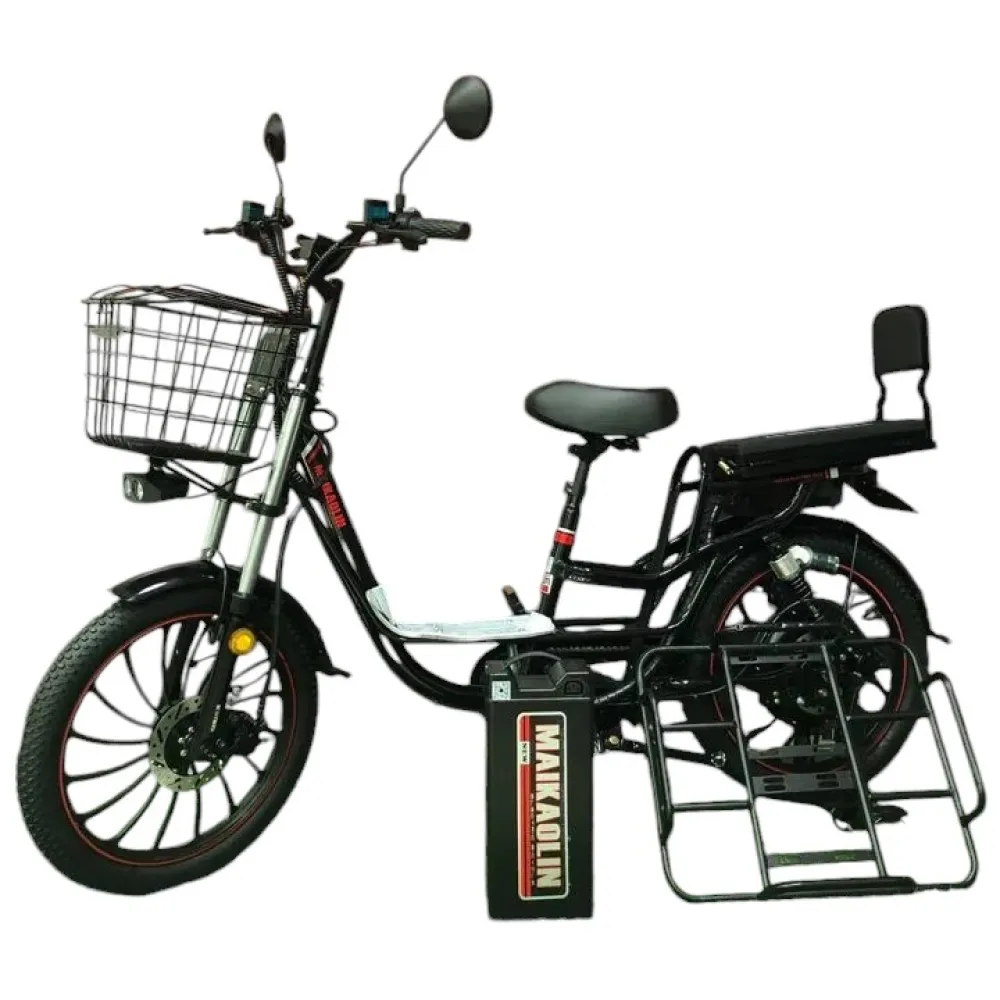 В комплекте: электровелосипед, аккумулятор, зарядное устройство, багажник, корзина.