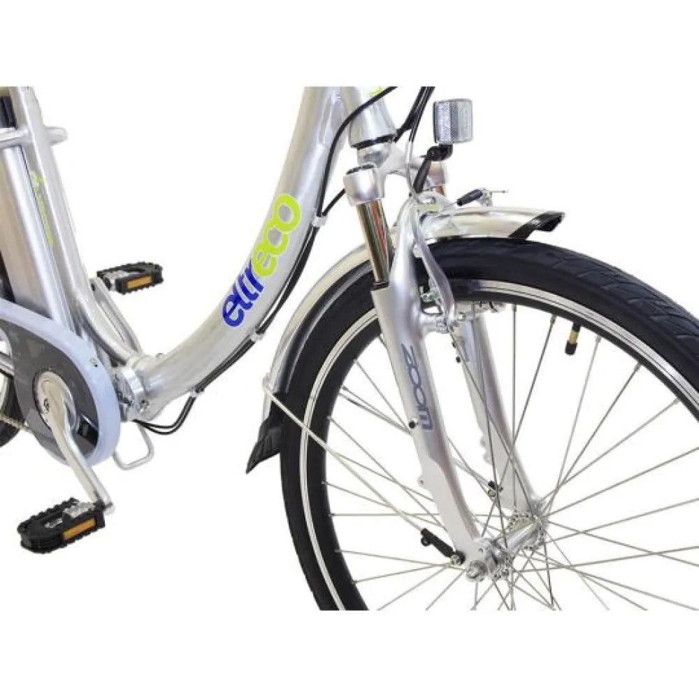 Электровелосипед Eltreco Vector оборудован двигателем мощностью 350 Вт, максимальная скорость которую развивает агрегат 45 км/ч, у него хорошая маневренность и проходимость. Дисковая тормозная система позволяет чувствовать себя уверенно на дороге. Рама байка складывается, при транспортировке он спокойно помещается в багажник автомобиля.