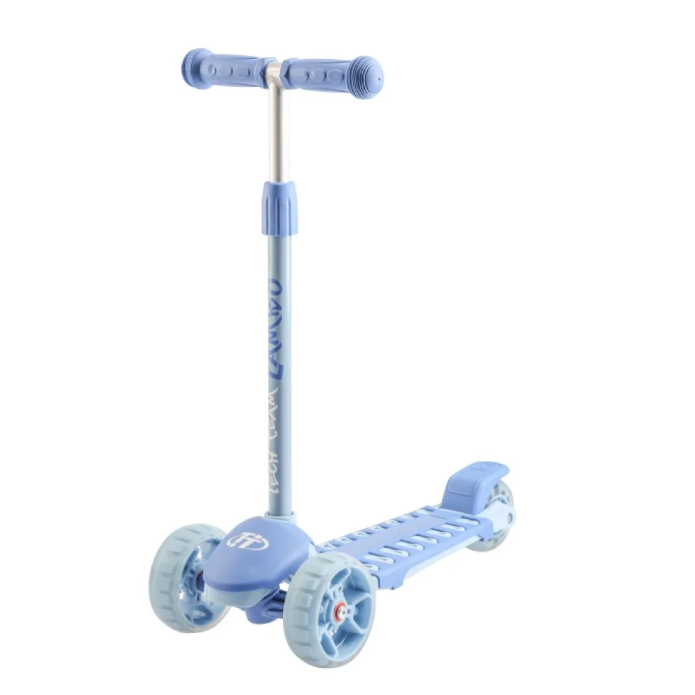 При создании самоката производители добились минимального веса и оптимальных параметров. Высота телескопической рулевой системы составляет 53-75 см, регулируется в 3-х положениях. Поворотный зажим надежно фиксируется. Прорезиненные рукоятки позволяют надежно схватиться ручками и устоять при маневрировании.