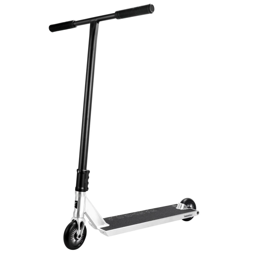 Трюковой самокат Tech Team Parmula белый – лучшая техника для экстрима и качественных прыжков. Легкий и прочный самокат весом 3,2 кг предлагает купить наш интернет-магазин. Модель считается лучшей по ценовой категории, стоимость оправдывает цели. Предлагаем убедиться в этом самостоятельно. Рама изготовлена из инновационного алюминия, выдерживающего максимальные нагрузки, не теряющего первоначальных характеристик при эксплуатации в жестких условиях. Презентабельный дизайн, надежность модели делает самокат лучшим в своем сегменте. Рулевая часть – послушная, оборудована прорезиненными грипсами, повторяющими строение руки райдера, делающими хват крепким. С такими параметрами уверенность ездока увеличивается в космических темпах. Нескользящая прорезиненная дека обещает безопасность при пользовании самокатом, исключает случайное соскальзывание стоп. 120-мм колесная часть, оснащенность алюминиевой фрезерованной вилкой гарантирует максимальный разгон и отличный накат, важный для выполнения трюков, маневрирования, выполнения других элементов экстремальной езды. Надеемся, вы остались в восторге от самоката. Предлагаем не откладывать оформление заказа на завтра, приступить к работе прямо сегодня.