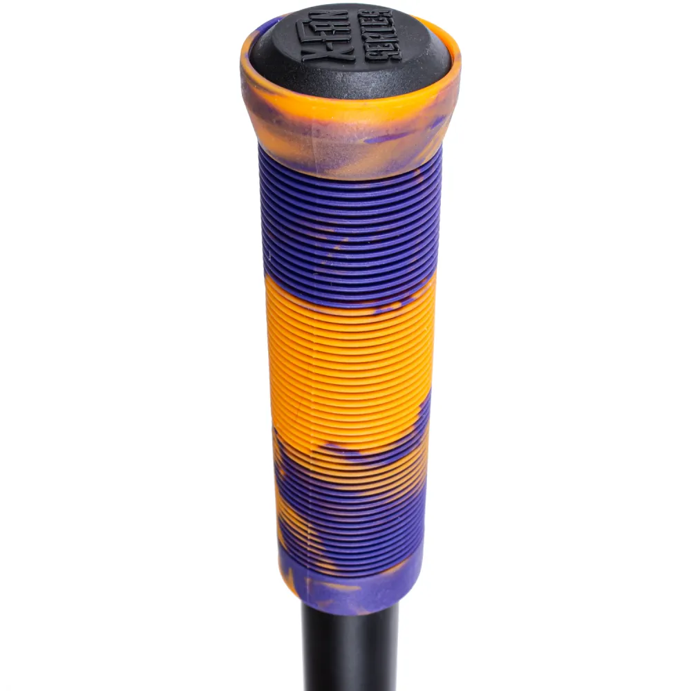 Самокаты изготавливаются в чёрных и фиолетовых тонах с дизайном «леттеринг». Грипсы 12 см, имеют два цвета с барендами из пластика.