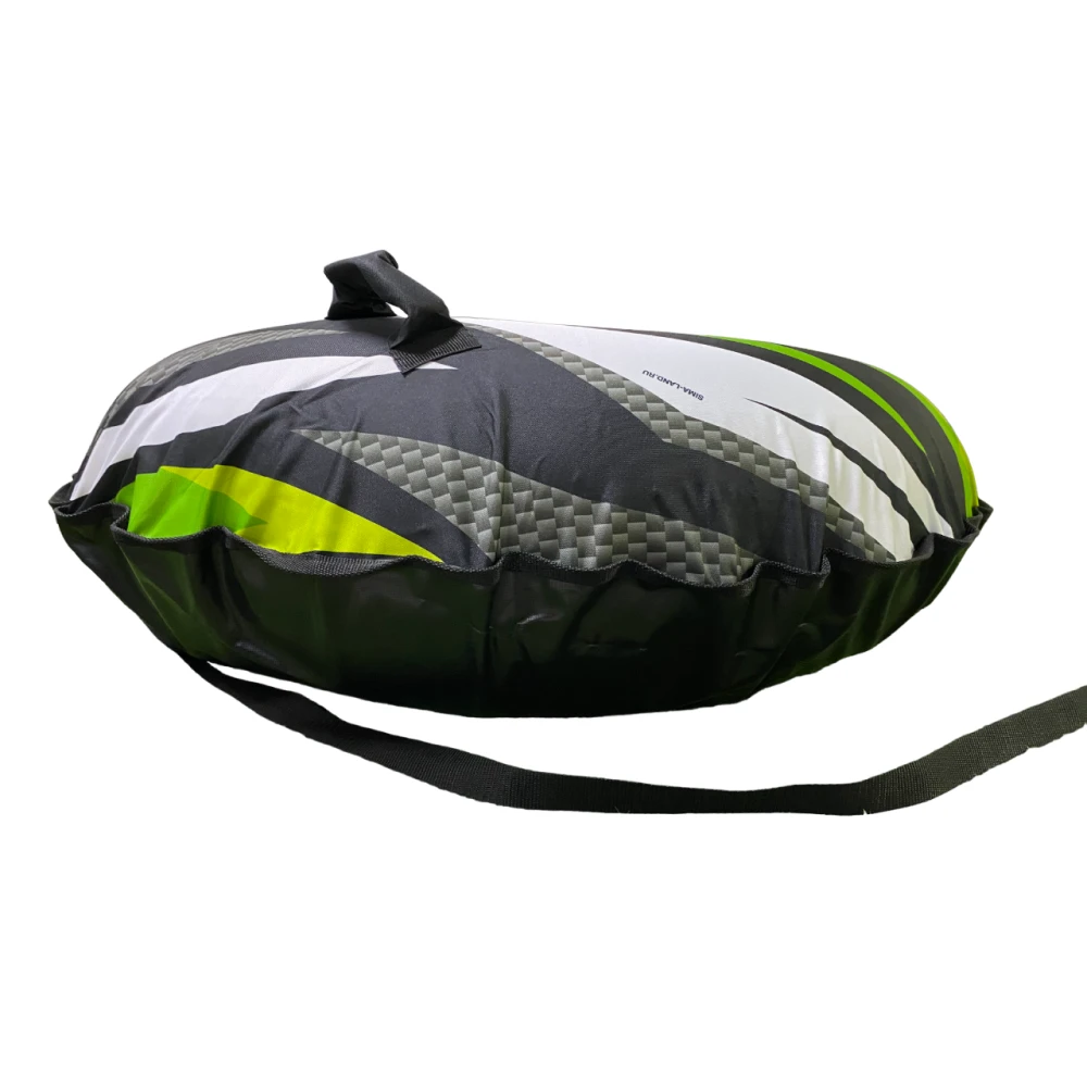 Тюбинг Карбон 120см - это уникальное и оригинальное средство для активного отдыха на воде. Он представляет собой надувное кольцо с диаметром 120 см, выполненное в стильном дизайне, напоминающем карбоновое волокно. Принт на данном тюбинге сочетает зеленые и белые элементы, что придает ему особую эстетику и привлекательность.